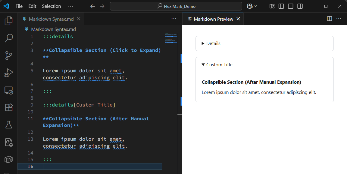 In addition to the basic Markdown syntax, FlexiMark supports its own extended syntax.
